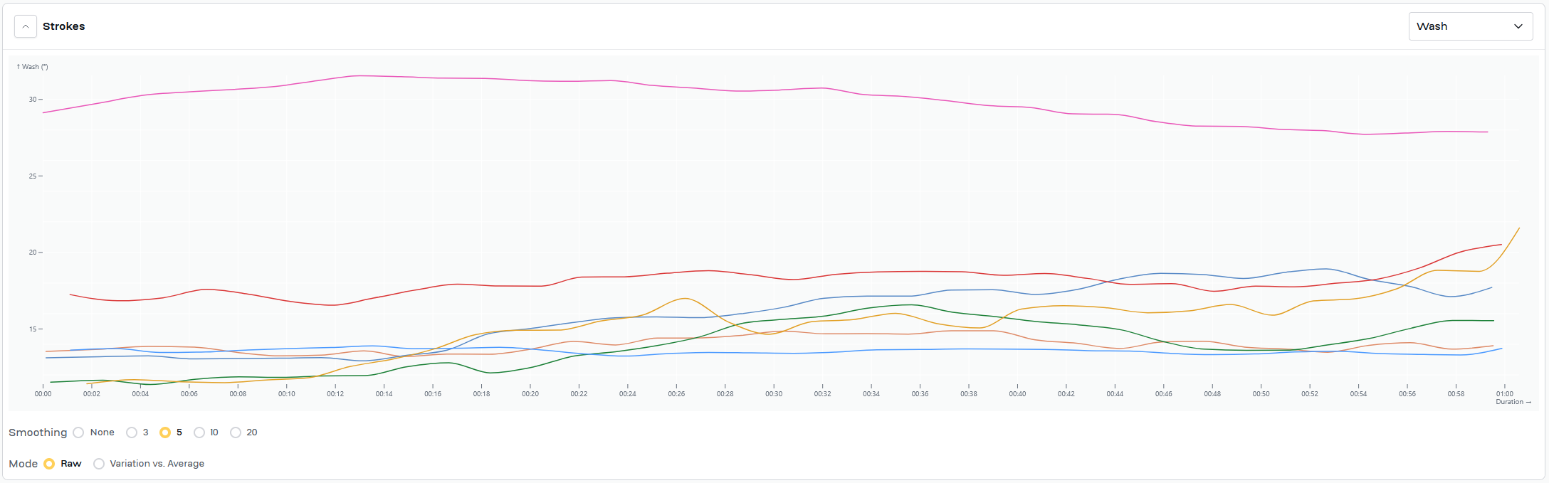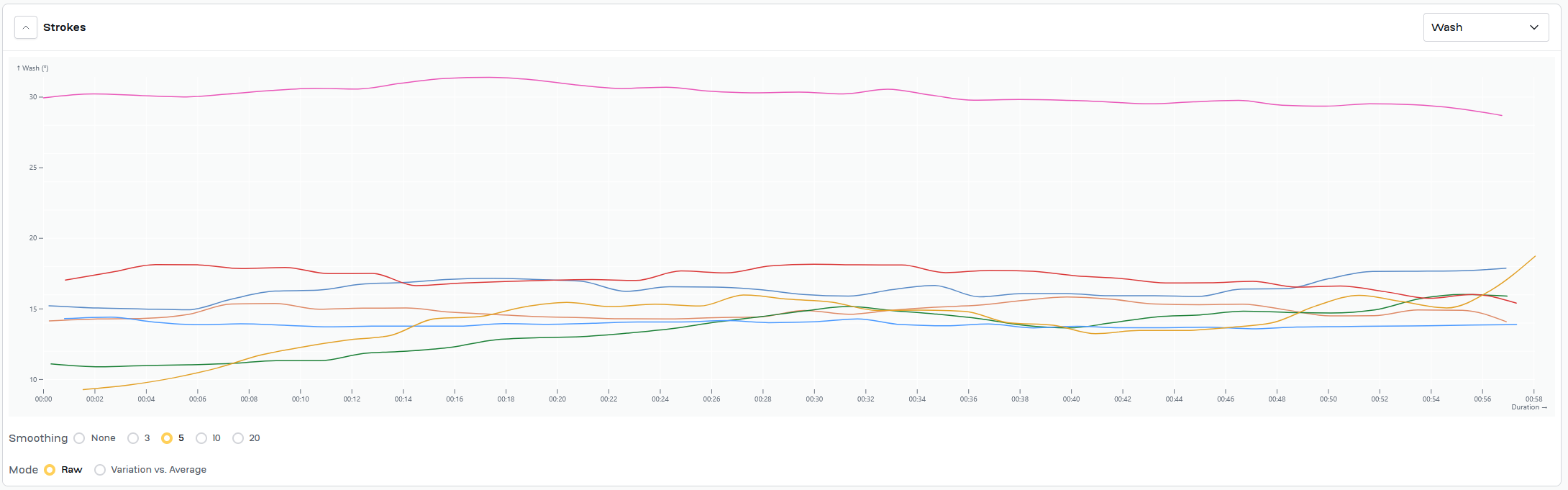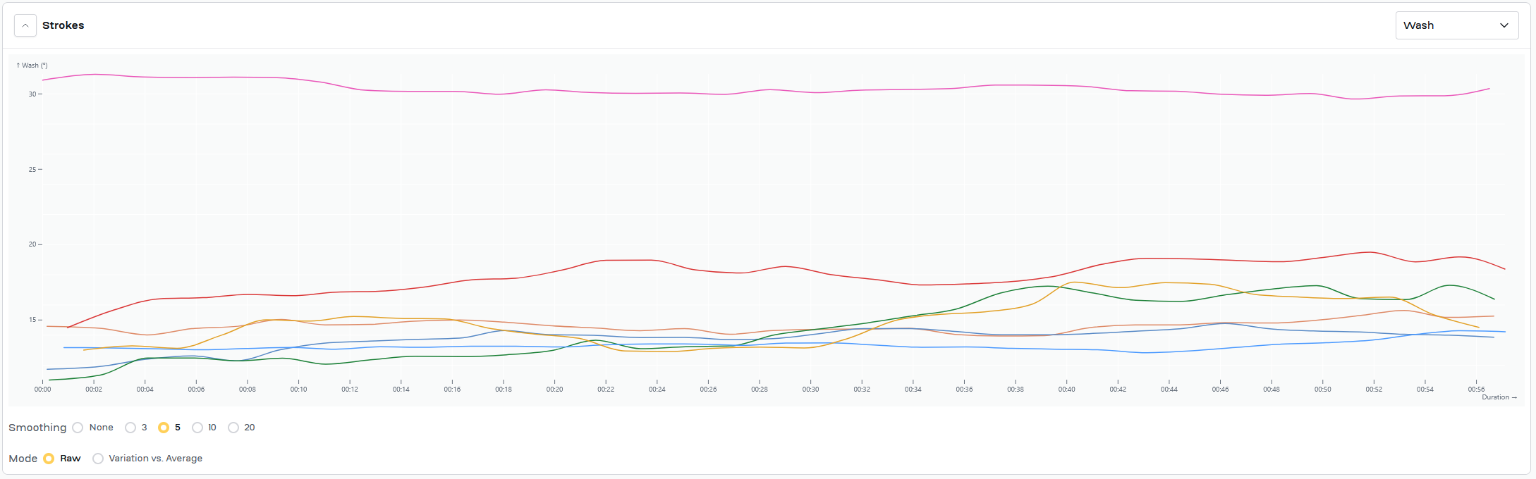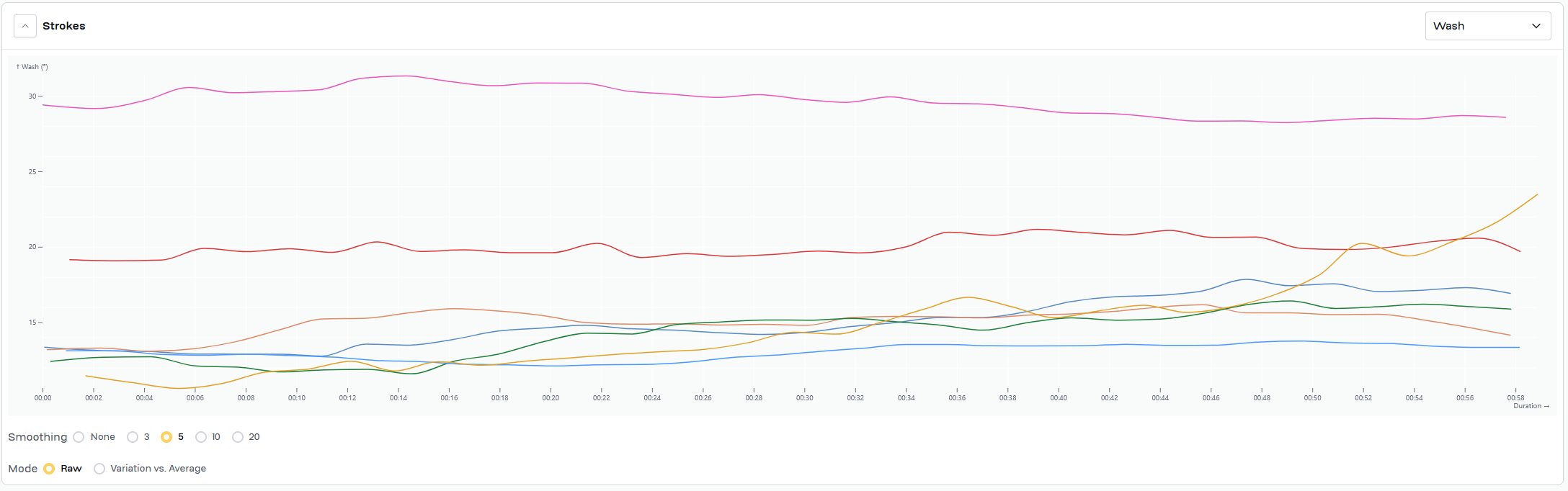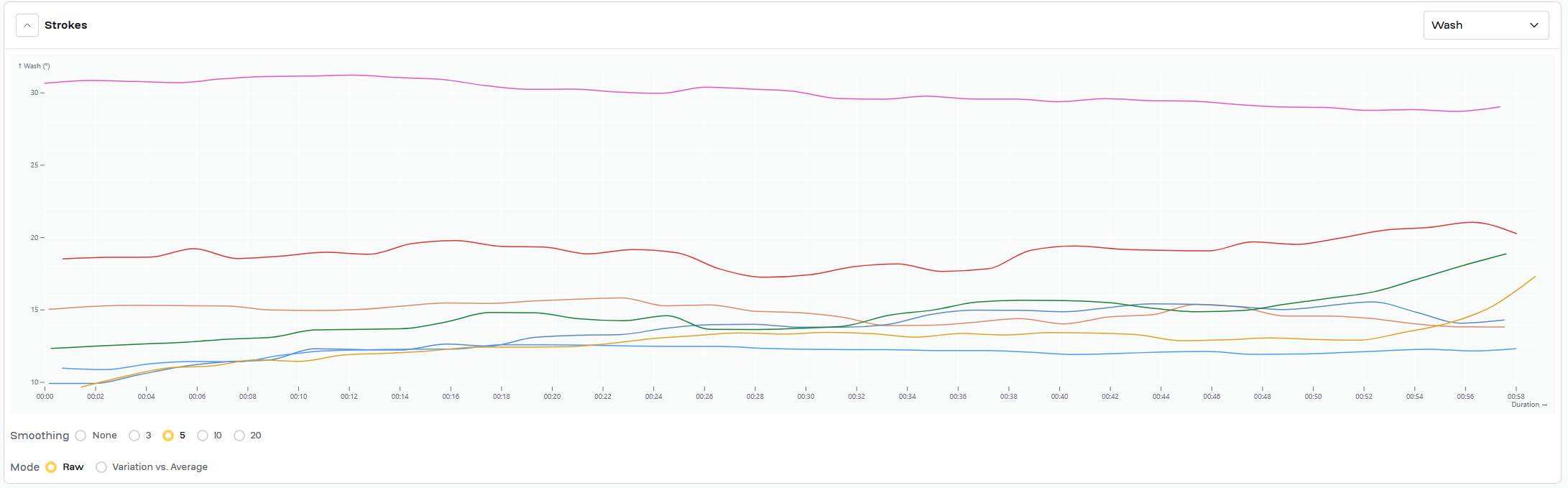 Work for today was same as Wednesday, 7x2'@24/1'@34. Swapped power/time chart for both slip/time and wash/time for each piece. Added a timestamp to the video to try to give context for the slip/time and wash/time graphs.